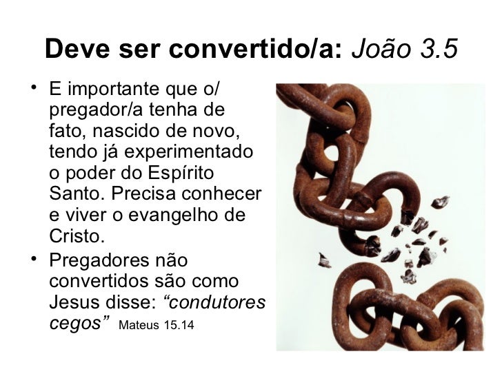 É importante que o/ pregador/a tenha de fato, nascido de novo, tendo já experimentado o poder do Espírito Santo. Precisa conhecer e viver o evangelho de Cristo.